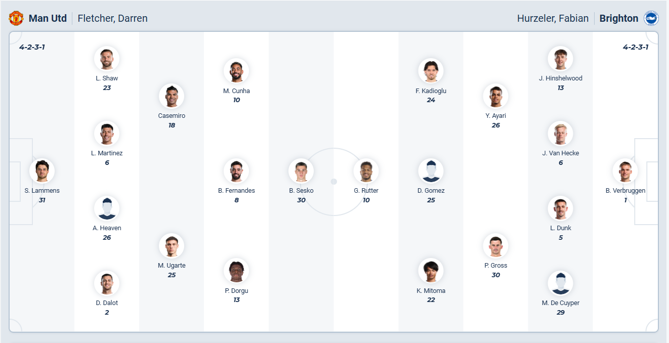 Man United đang chơi rất tệ thời gian gần đây khi họ không thắng 3 trận gần nhất (đều hòa), HLV Ruben Amorim thì đã bị sa thải còn HLV tạm quyền Ole Gunna Solskjaer chắc chắn chưa thể nắm hết mội vấn đề của đội bóng. Đây là điều sẽ khiến đội bóng chủ sân Old Trafford gặp nhiều khó khăn ở trận đấu tiếp theo của họ ở FA Cup, nơi họ đối đầu với đội bóng rất khó chịu là Brighton. Nhiều khả năng Man United chưa thể chơi khởi sấc đủ để gây ra nhiều khó khăn cho Brighton, đội chủ nhà khả năng sẽ bị loại sau trận đấu này.